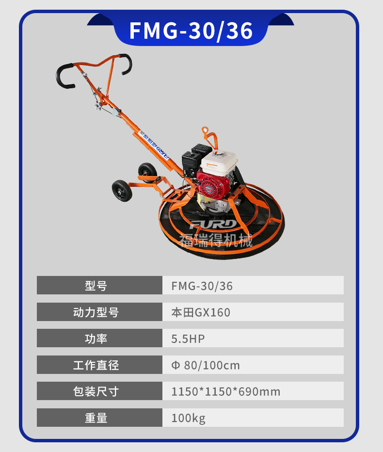 产品简介:混凝土抹光机​广泛用于高标准厂房、仓库、停车场、广场、机场以及框架式楼房的混凝土表面的提浆、抹平、抹光。是混凝土施工中的较好机具。